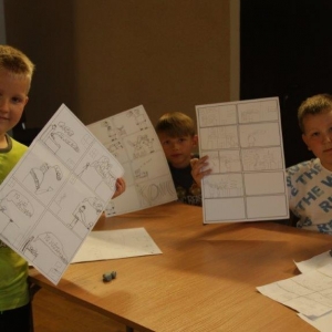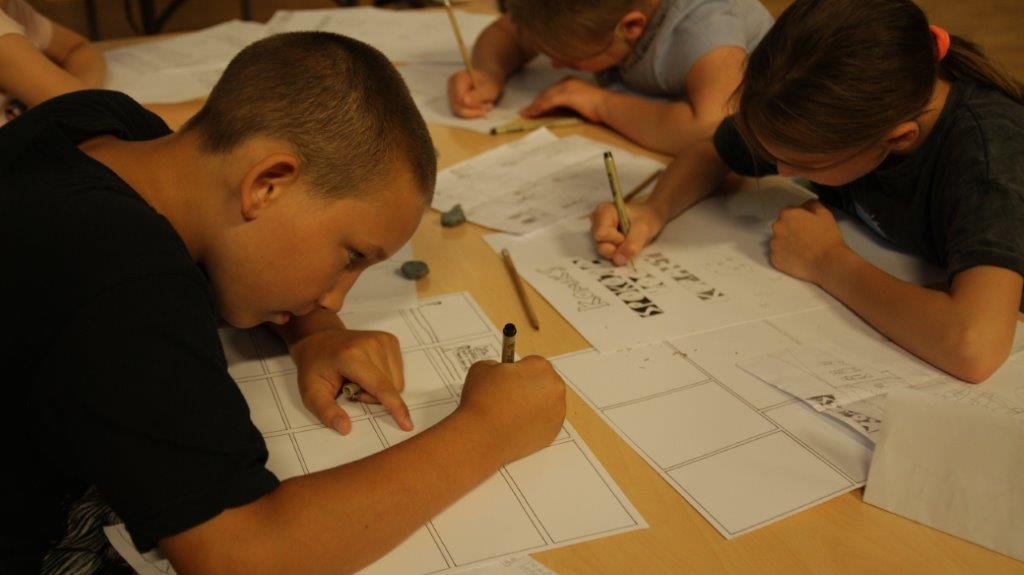 Warsztaty komiksowe „Demony słowiańskie” podsumowaliśmy na wspólnym spotkaniu projektu. Efekty prac zobaczyć można na wystawie w Centrum Kultury. Są to prace powstałe podczas warsztatów. Krótkie historie inspirowane postaciami mitologii słowiańskiej wplecione zostały we współczesny świat i bohaterów. Rusałki, demony i bóstwa przeniesione na papier są indywidualną wizją słowiańskiej tradycji przetworzoną przez wrażliwość i talent uczestnika warsztatów. Ekspozycja prac to kreatywny pomost między tradycją a nowoczesnością i udowadnia, że słowiańskie dziedzictwo jest wciąż żywe i może inspirować współczesnych twórców.